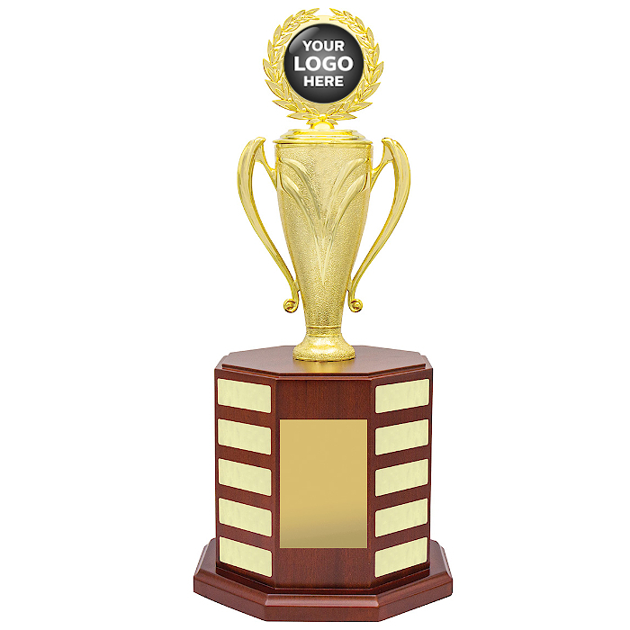 The Wellington Perpetual presents a unique shape and prominent position to display your club, school or business log on top. The multi sided timber base provides ample space to add your recipient names well into the future. The price includes your logo presented as a 50mm domed disc on the top of the perpetual, free engraving of your title plate and the first winner’s plate if known at the time of ordering.
